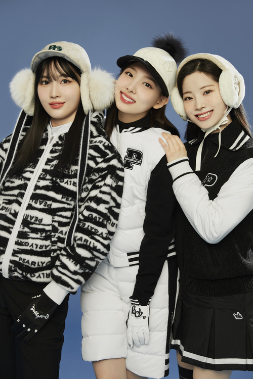 깔끔한 화이트 룩을 선보인 트와이스 나연의 ‘스트라이프 패딩 셋업’은 자체 발열 기능이 있는 친환경 솔라볼 충전재를 사용하여 세탁이 편리하고 보온성이 우수하다.