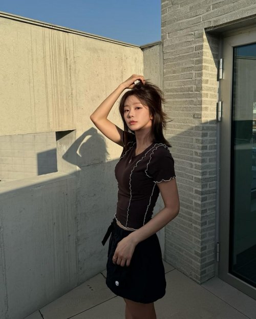 또 다른 사진에서는 크롭 티셔츠와 카고 스커트를 착용하는 등 이주빈의 완벽한 바디 프로포션을 드러냈다.
