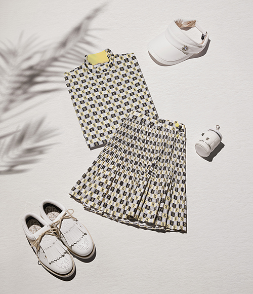 클래식한 디자인의 티셔츠, 큐롯 스커트에 패턴을 적용하였다. 본격적인 골프 시즌을 맞아 다채로운 골프웨어 스타일링을 위한 아이템으로 활용하기에 좋다.